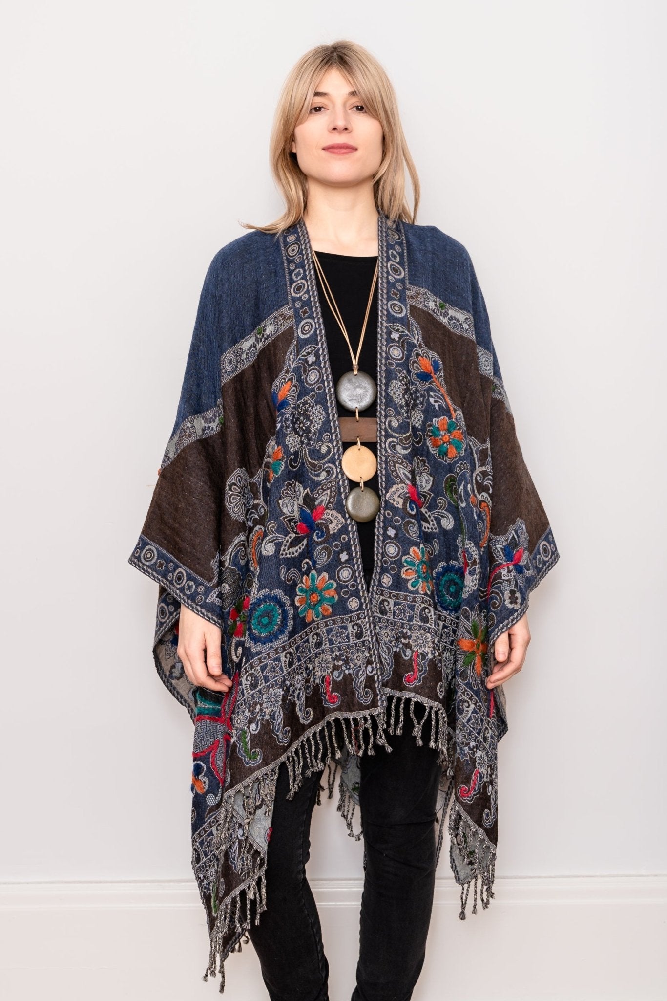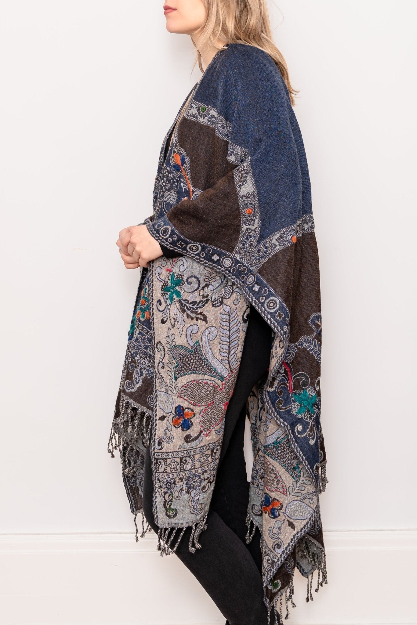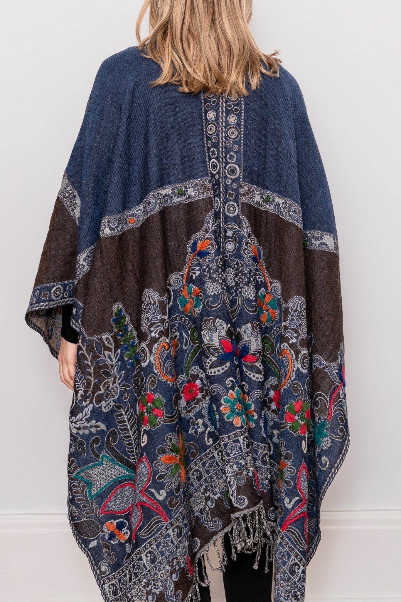 Embroidered Wool Ruana - Madeline