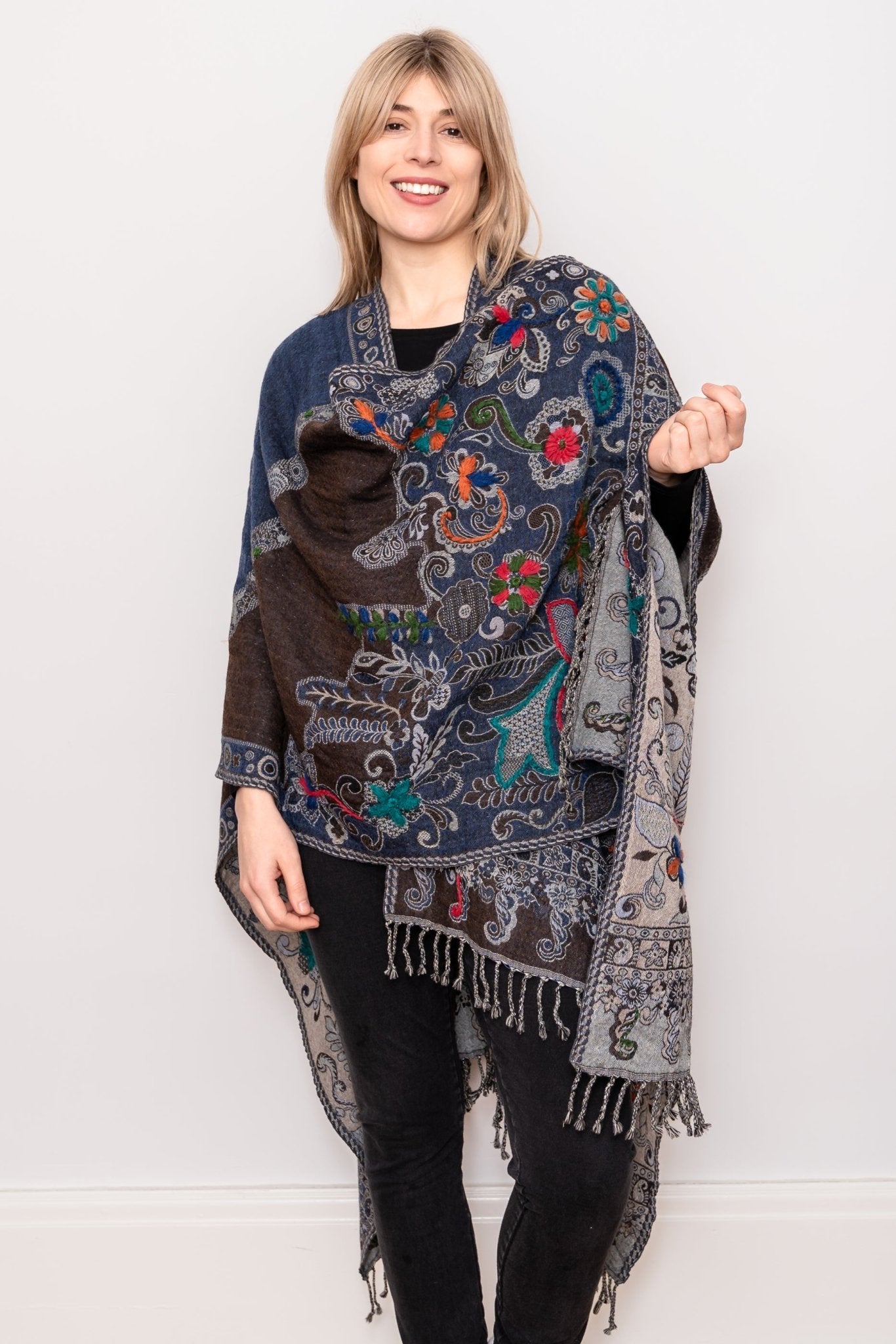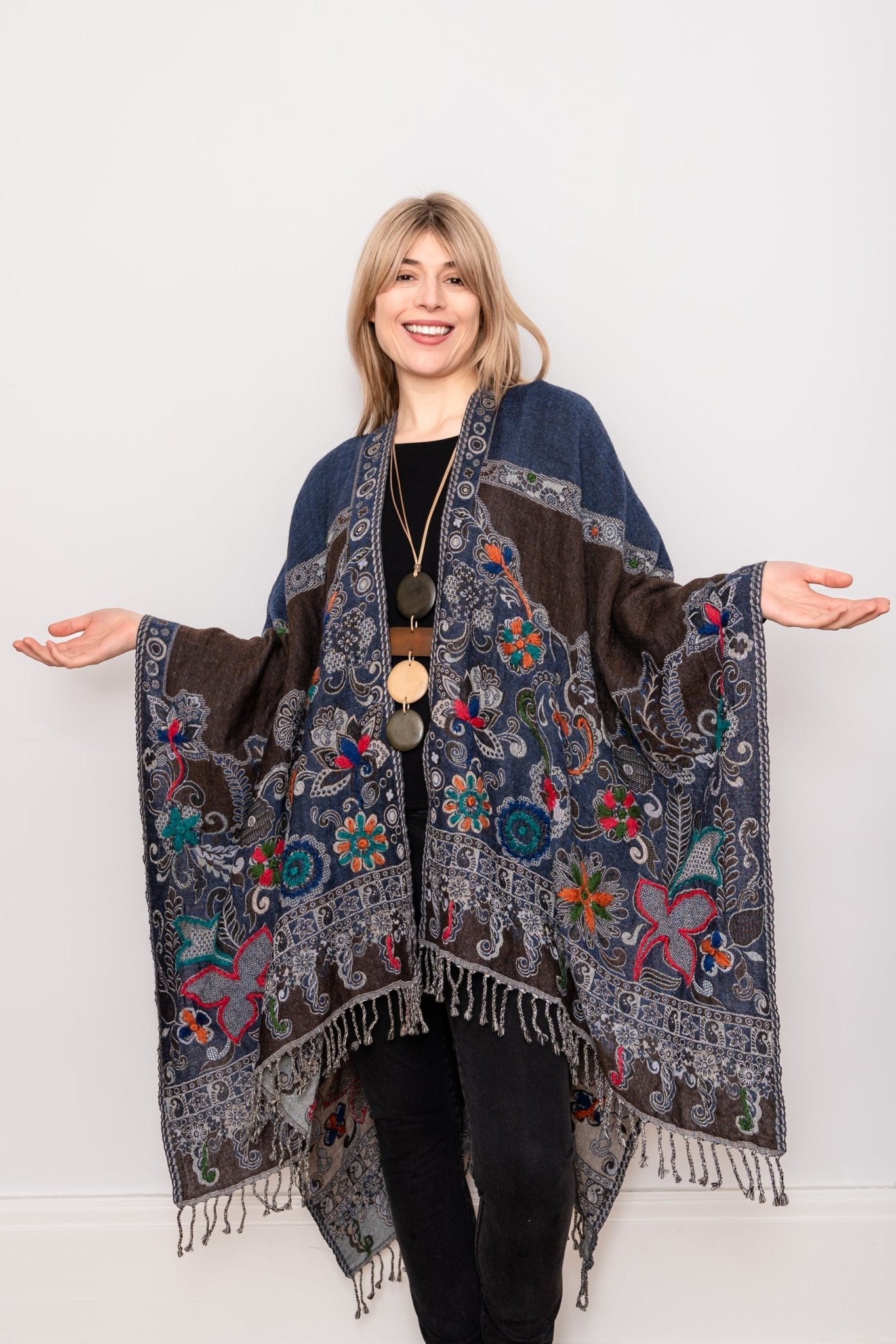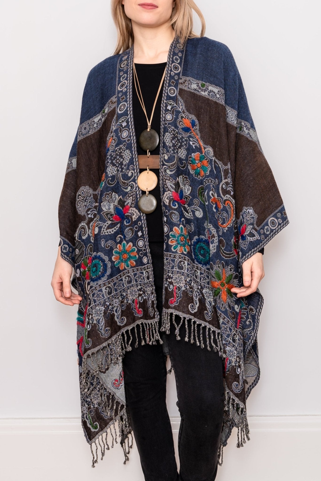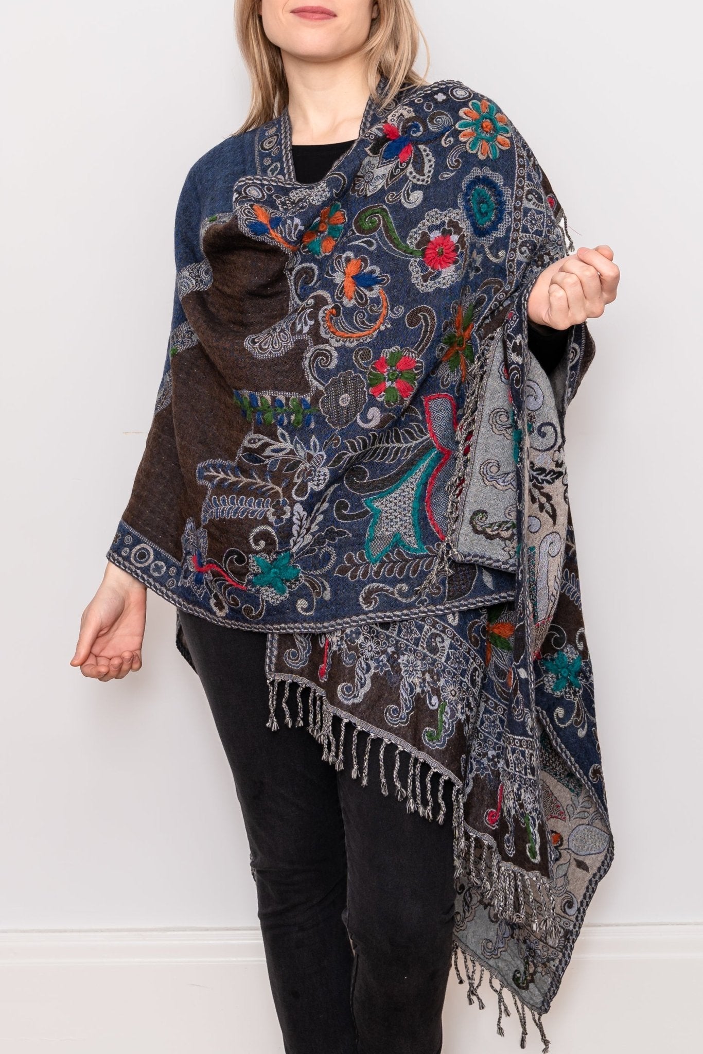 Embroidered Wool Ruana - Madeline